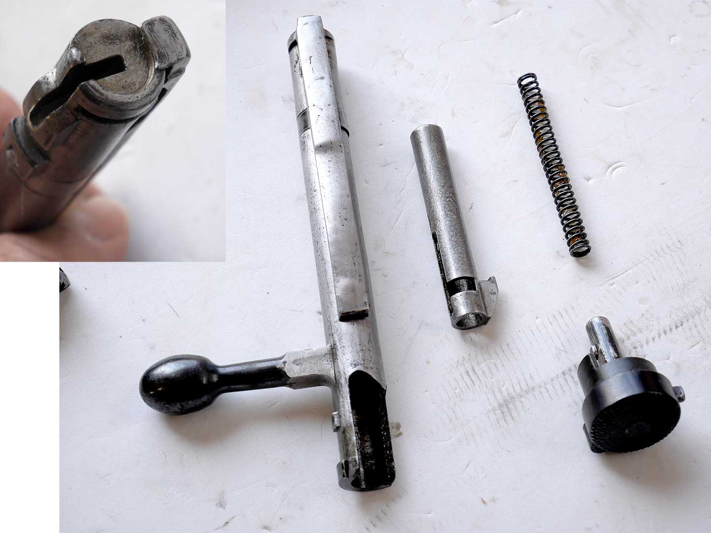 角ばっている、そうして何より「東京六研複製 」と六研のレシーバーに刻まれていることです。ミロクには同じように「ミロク精機製作所複製 」と刻印があります。そうだったのか、状況証拠からミロクの三八式は、六研・三八式を参考にして製作されたコピーだと確信しました。想像するにミロクさんは中田商店から六研製を渡され、これと同じものを作ってくれと頼まれたのでしょう。