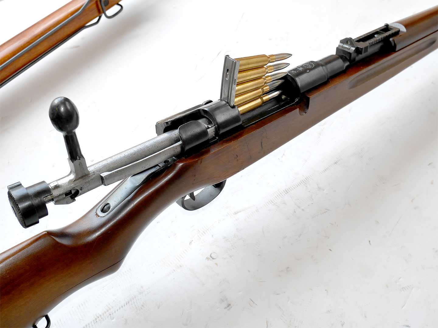 モデルガンのコレクションとしてミロク・オリジナルの状態として保存するのか、はたまた実銃の三八式の初期型や中期型に合わせてパーツを変更して戦時中の時代に合わせるのか、オーナーさんにとっては悩ましいところではないでしょうか?