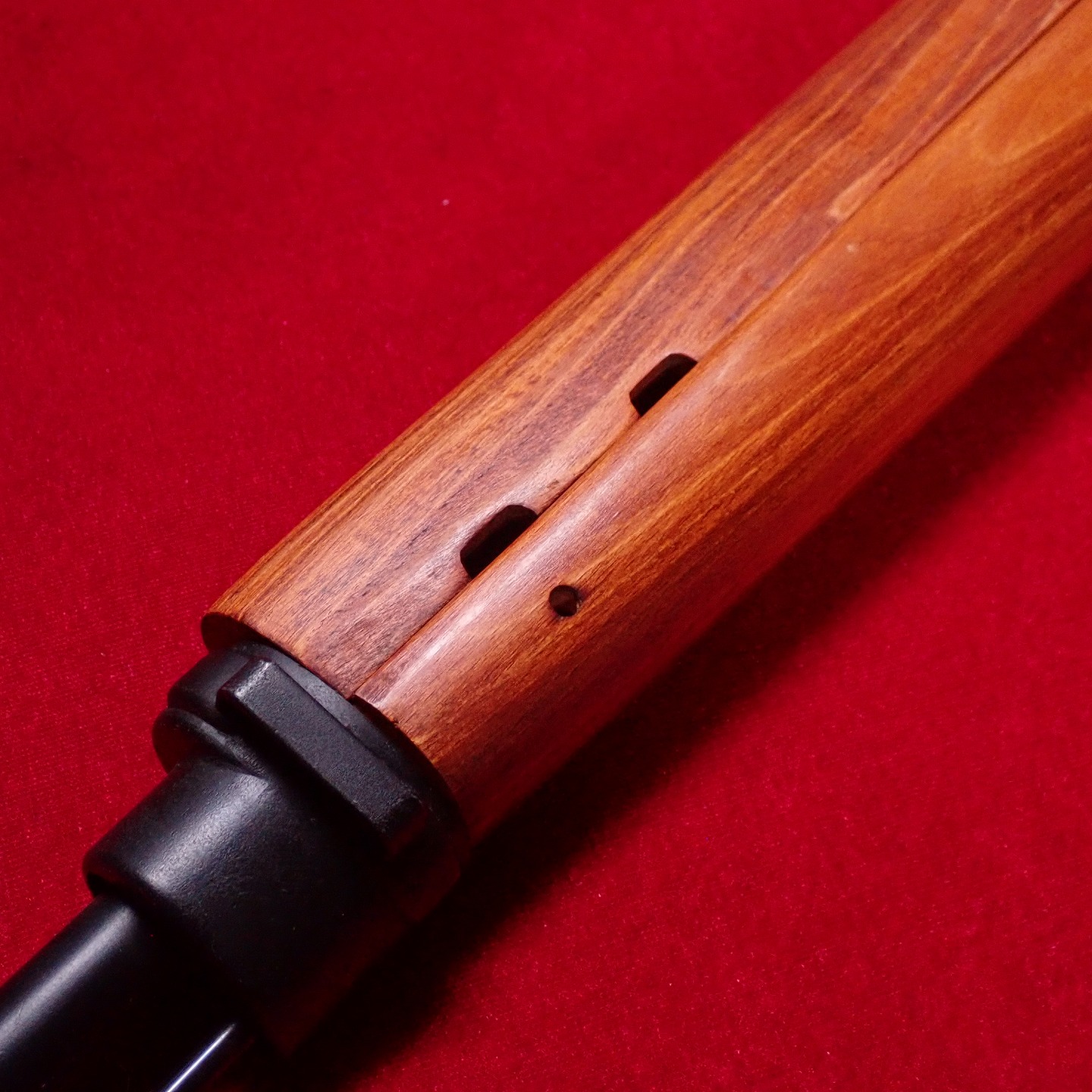 なんて手が込んだモデルガンでしょう、合板ストックが見事に再現されています。実銃が作られた1943年くらいでは、世界でも合板技術は最先端の物だったようで、工業先進国のドイツくらいしか軍用銃への応用は見られません(日本でも試作品には見られます)。