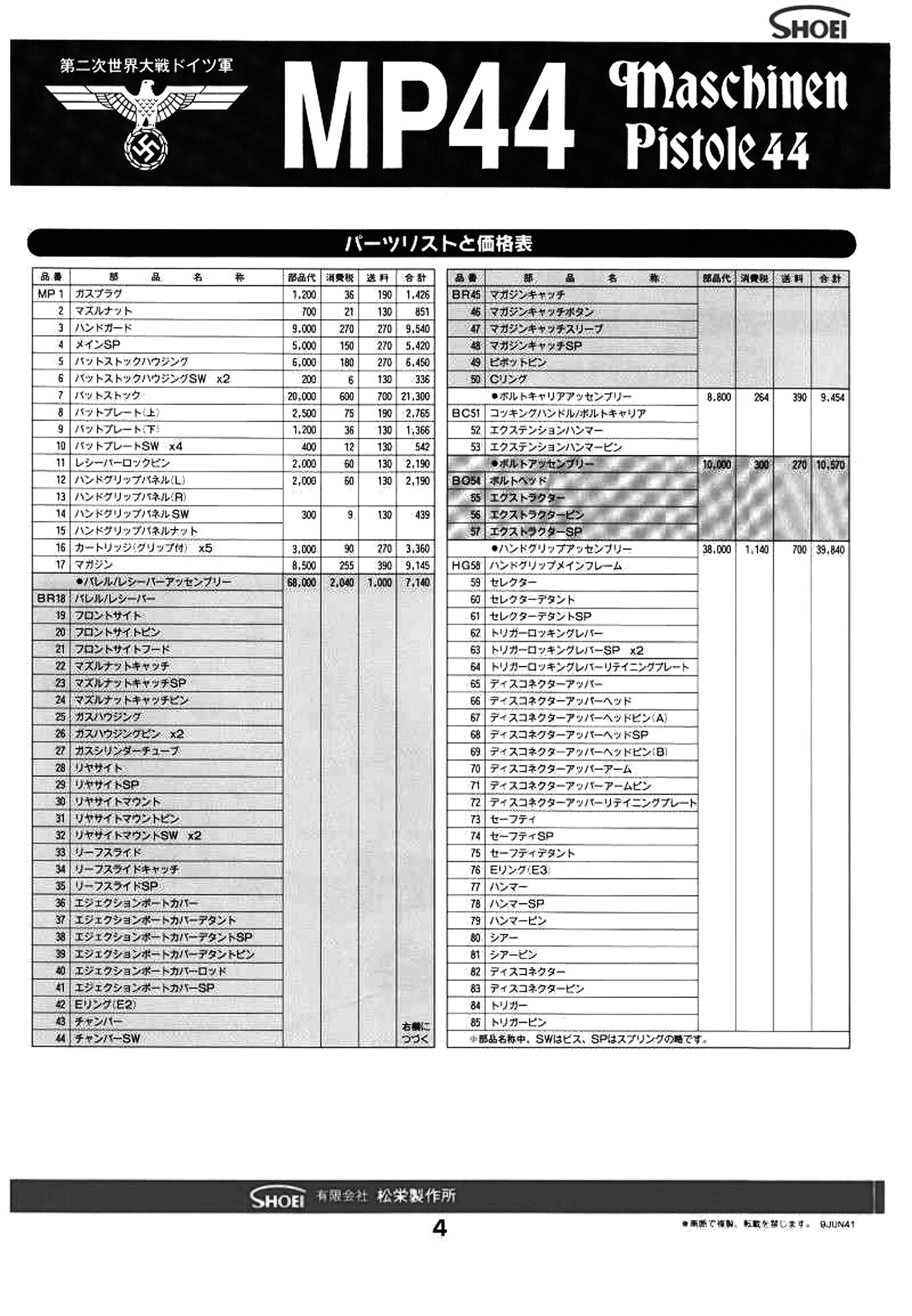 Gun 誌95年6月号に本物対モデルガンにショウエイMP 44 が登場していて、その中で組み立て前のパーツを用いて