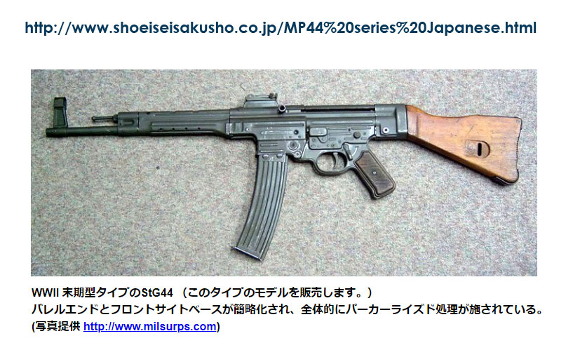 - 私は今までMP44 とStG44 は刻印だけが違うモデルが存在していると思っていましたが、ひょっとするとStG は末期型のみしか存在しないのかもしれません。その場合は全部で5種類となります。