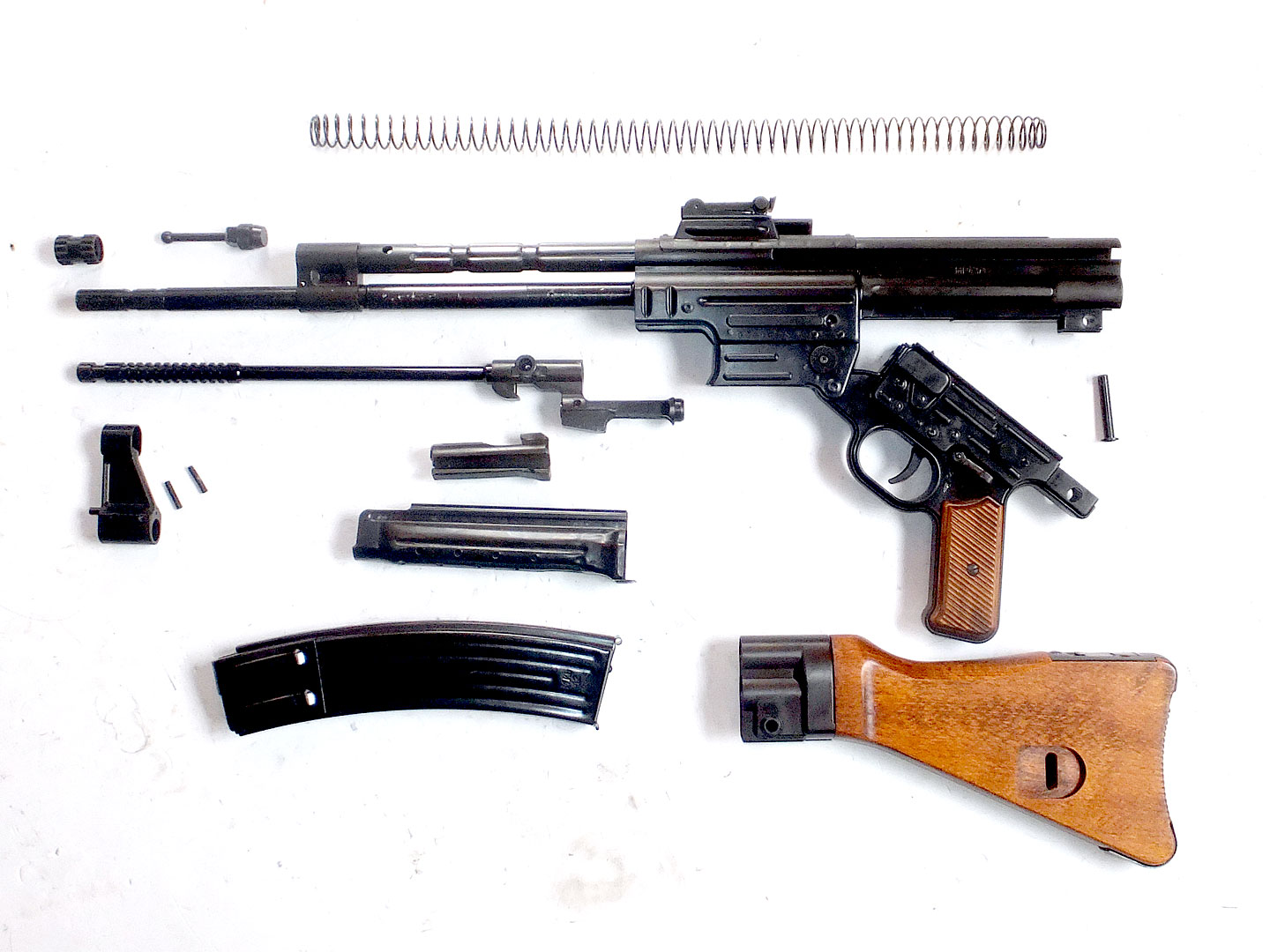 設計リーダーのヒューゴ・シュマイザーさんの名前は、あまり好まれないのか、この銃の説明には登場しないことが多いです が、天才的レイアウト、そつない配置は、戦後の AK-47や米軍のM-16 などにも影響を見ることができます。 この銃には、当時のドイツの工業力の高さが詰まっています。