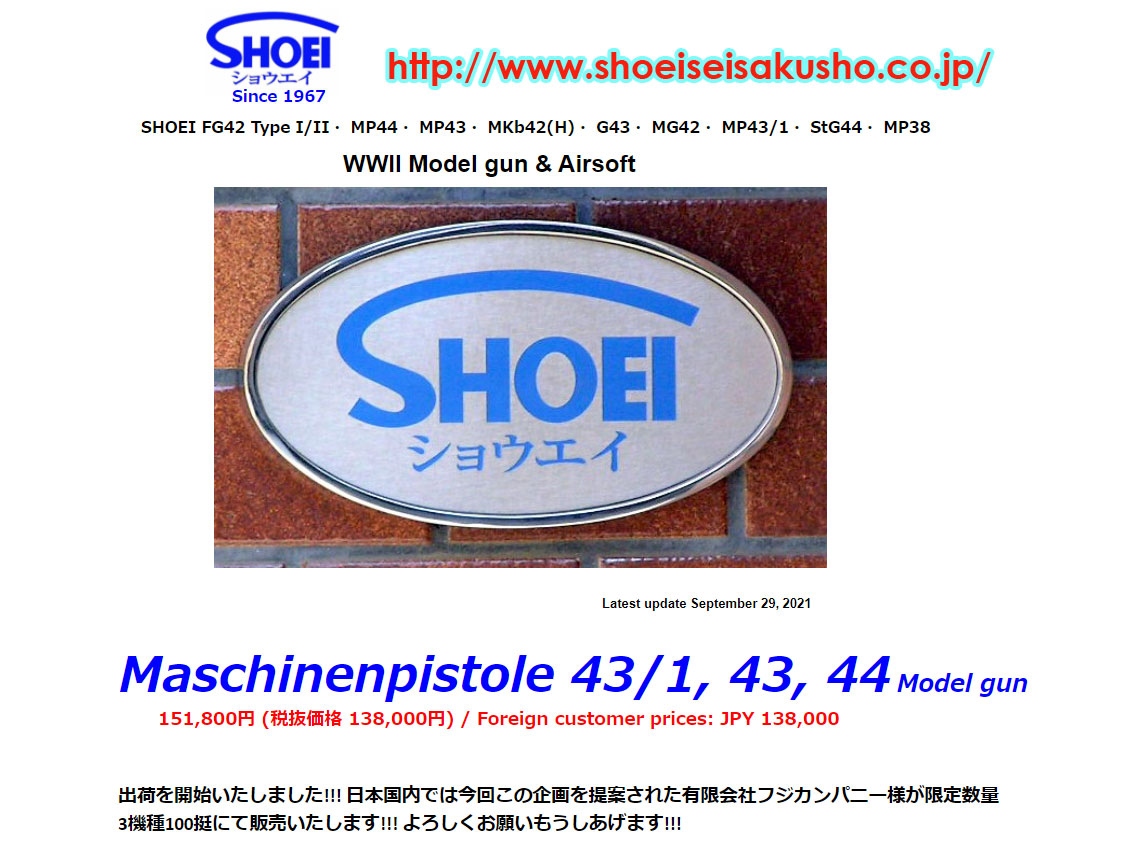 以前からMP43 などのバージョンも少数存在していたことは知っていましたが、 2021年2月にフジカンパニーからの発注により少数製作すると告知されました。 刻印以外にどのような違いがあるのか、よく知りませんが、MP44 に加えて以下の2バージョンが 発売されました、松栄さんのWEB によると合計で100丁だそうです。