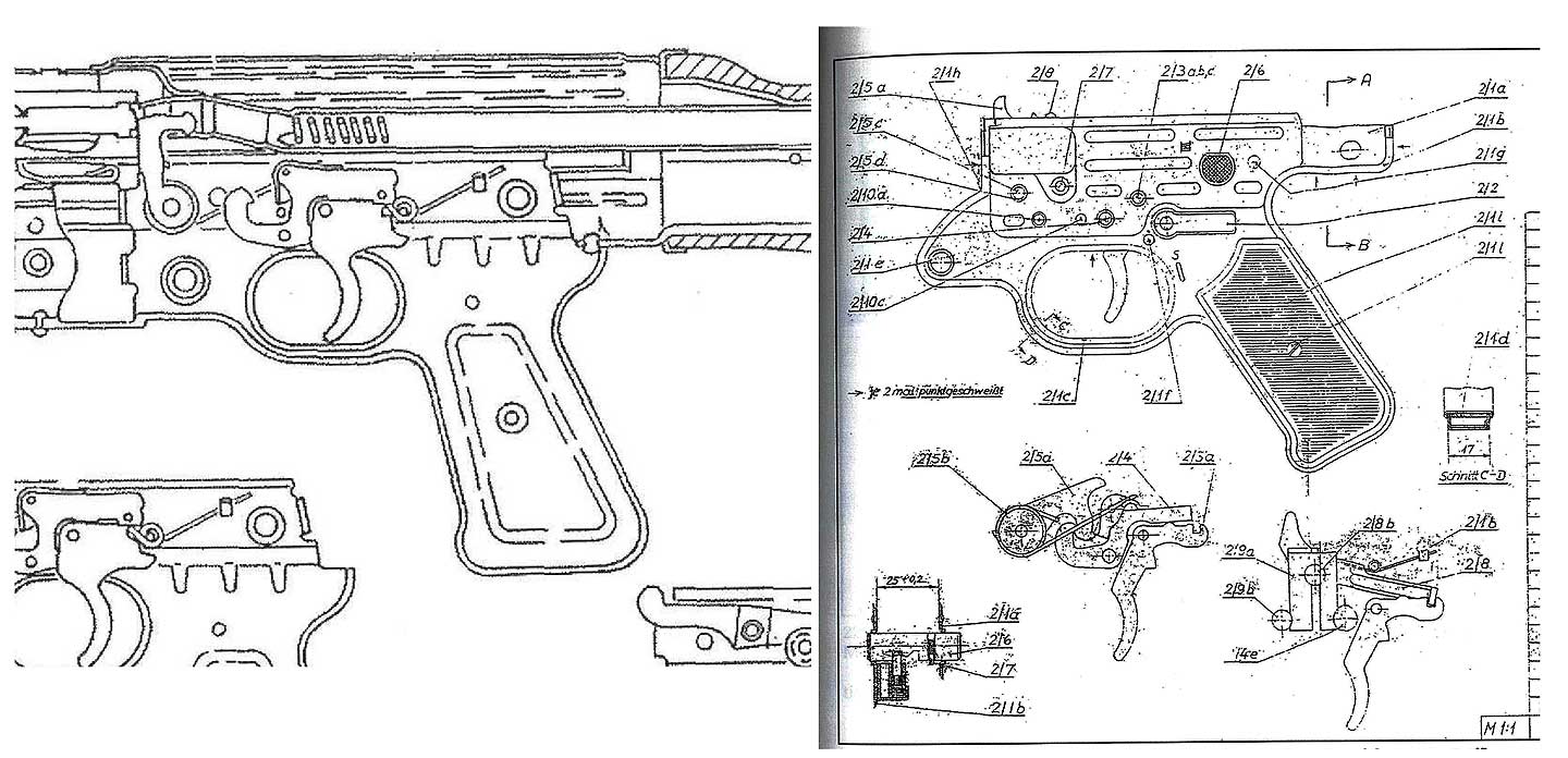 英語ですが、モデルガンフォーラムの http://mp40modelguns.forumotion.net/ から取ってきました。クリック拡大します。うんちく
