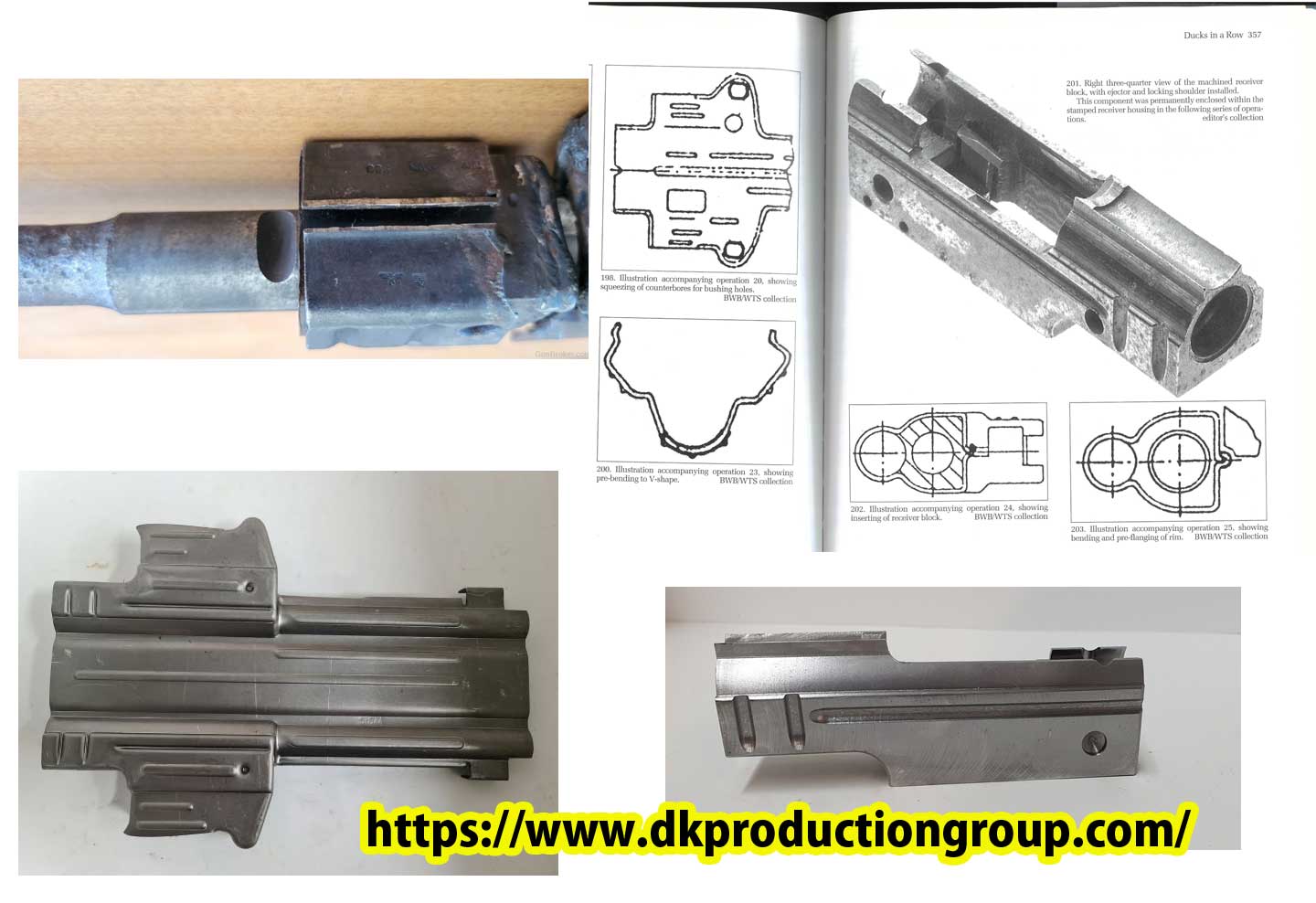 MP44 は戦時下に量産できるようにプレス加工を多用し、バレルもネジ込みではありませんでした。左上の写真のように バレルはピン止めです。また、チャンバー部分を鉄板で巻きずしのように巻いてレシーバを作成します。そのパーツまでも 売っているのですから、アメリカっていう国はとんでもないところです。左下の分解図は、溶接前の素材の段階から描いていますので大変参考になります。プレスと溶接で成り立っていることが良く分かります。 右下はドイツ製の22ロングライフルの銃ですが米国では500ドルくらいで売っているようです。モデルガンより安くて撃てるなんていいっすね。左上にあったパーツ屋さんのページはこちら、必見です。