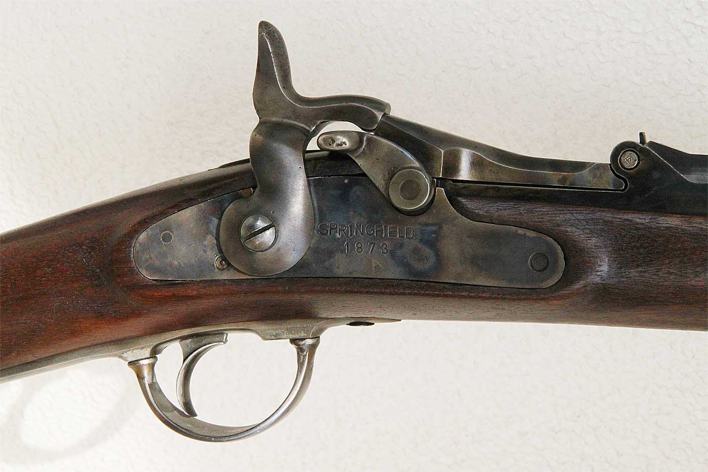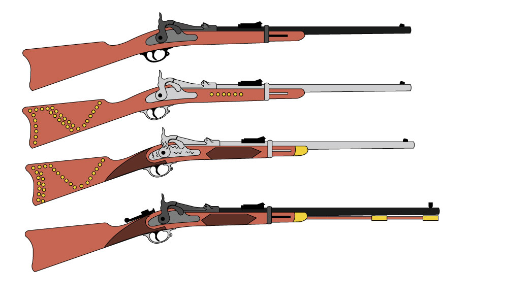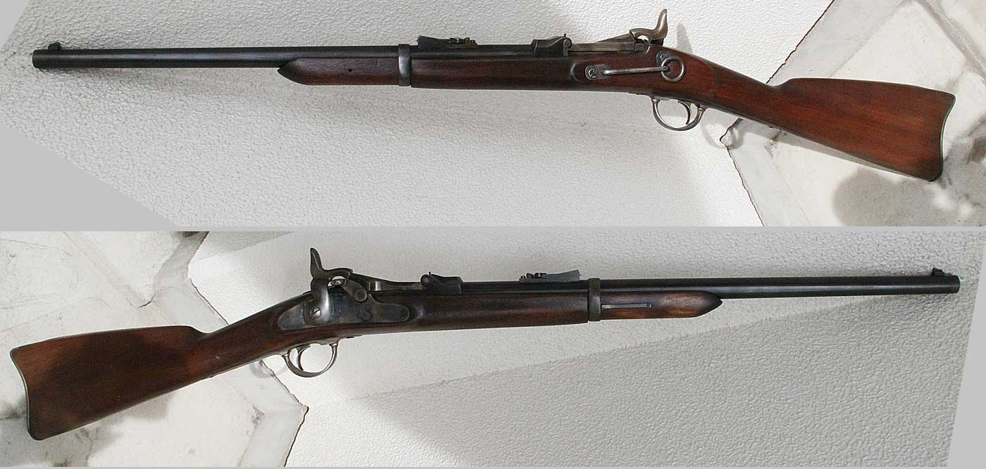 正式にはスプリングフィールド1873と言います。フリントロック式からパーカッション式に 銃が進化したあと、センター打ちの薬きょう式が流行りだした頃の銃で、米軍正式のパーカッション式マスケット銃が基になっています。