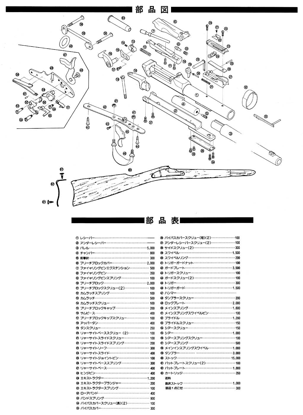 バレルバンドを外してハンマー基部のストック上のネジを一本外せばバレルは上方に簡単に外せます。