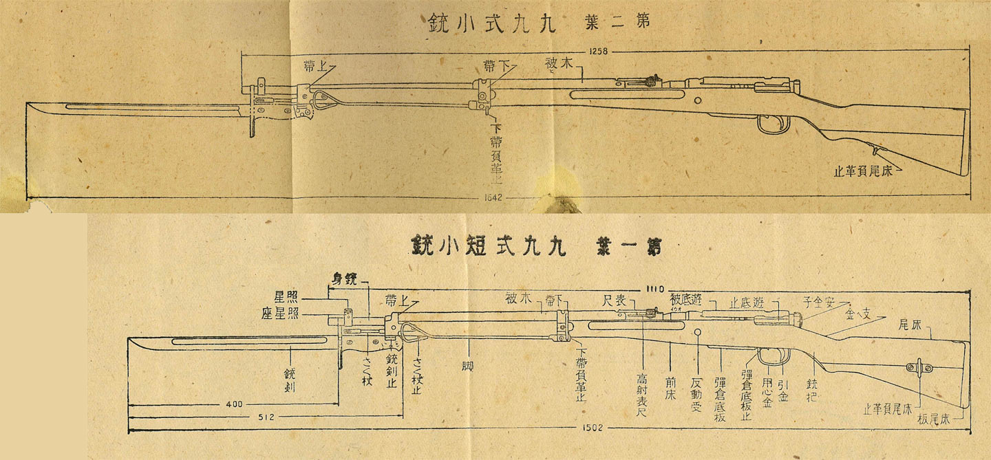 三八式が採用されたのは 1905年、九九式は 1939年なので34年たっていますが、そんなに大きくは変わっていません。