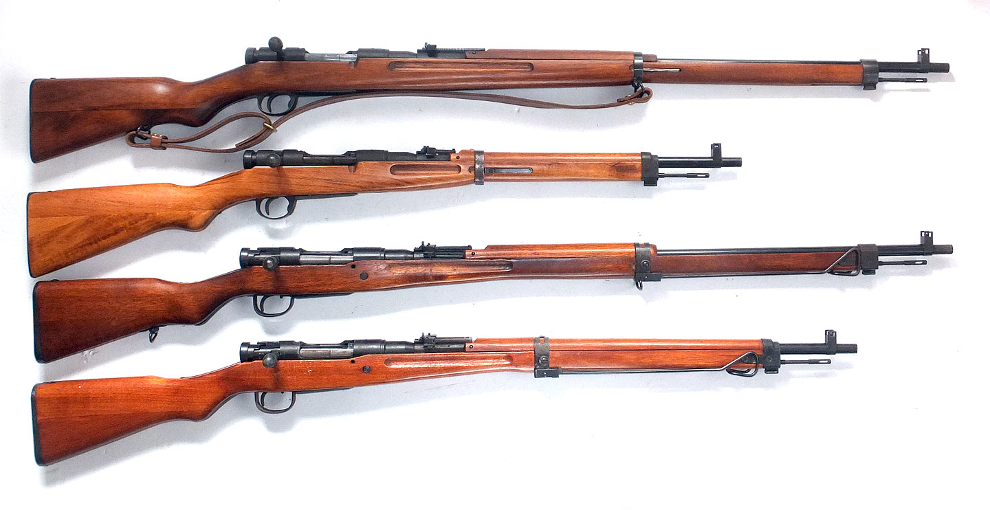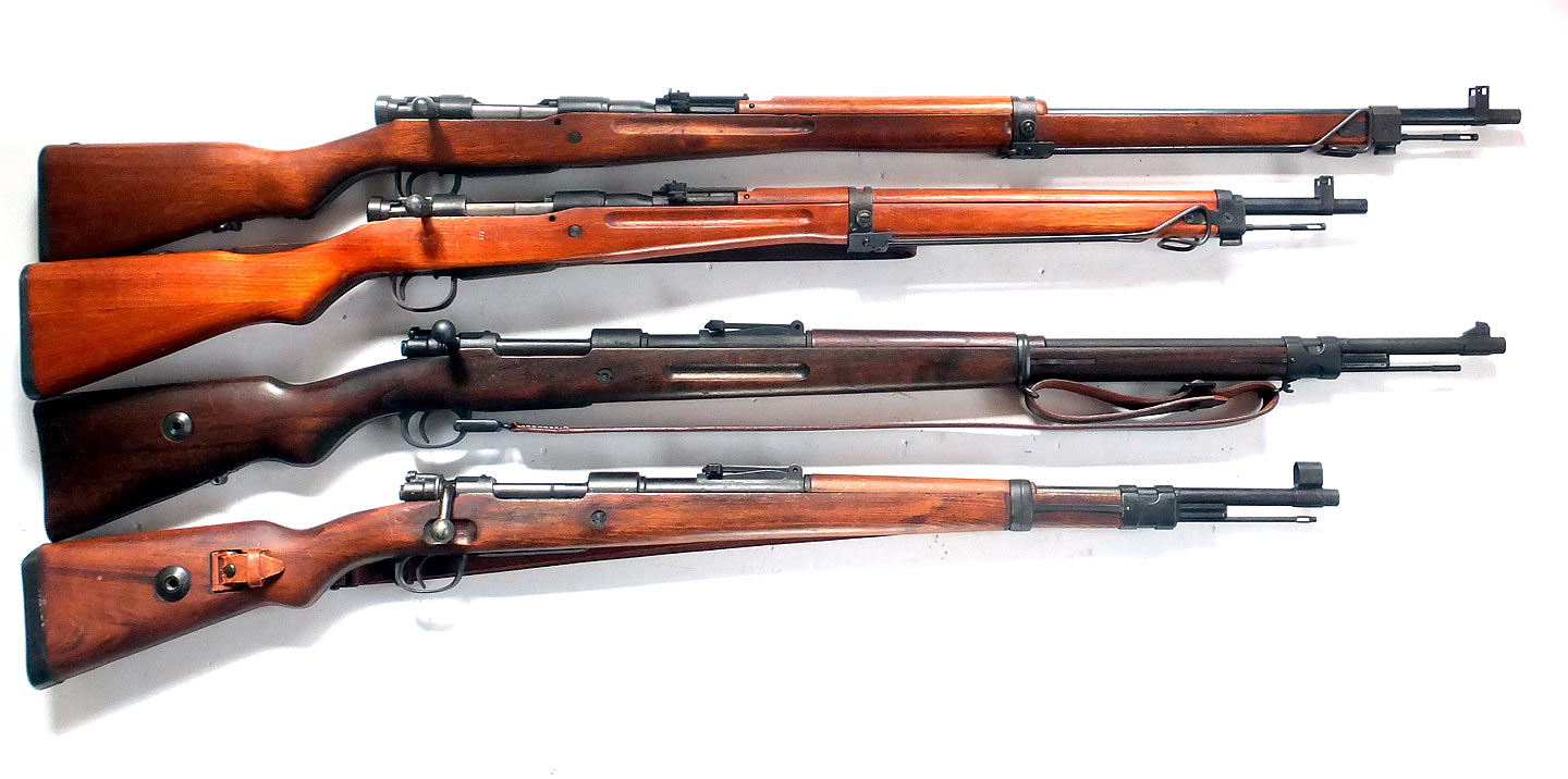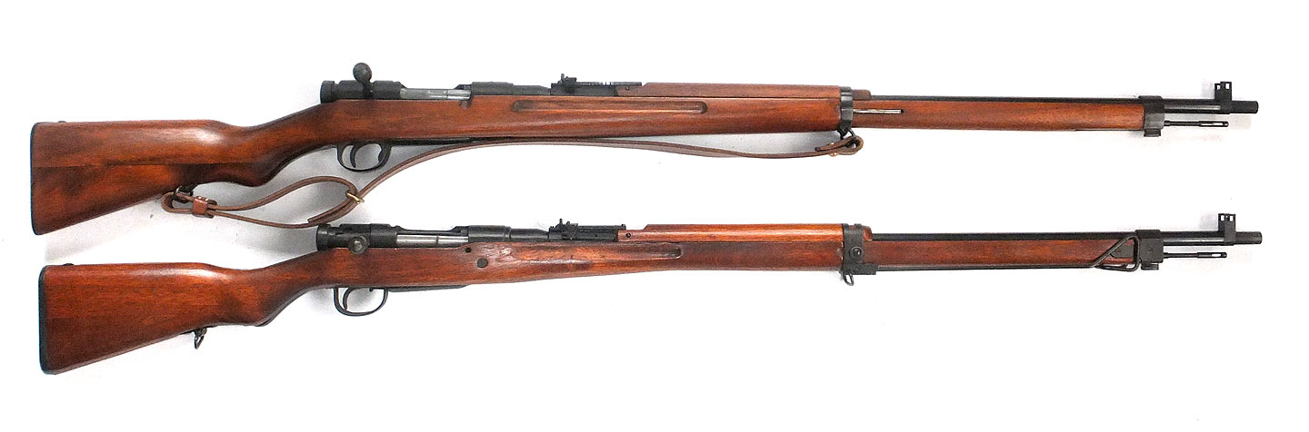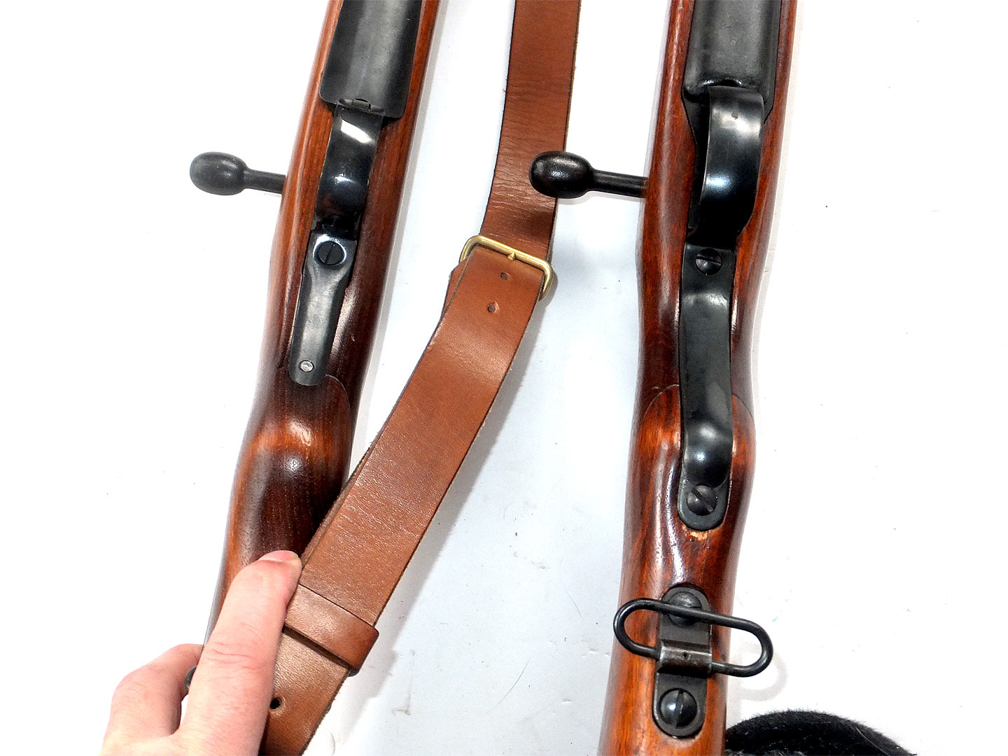 スリングの付け方が下方向と左サイドになっています。ドイツのモーゼル小銃で言えば、Gew とKar の違いです。