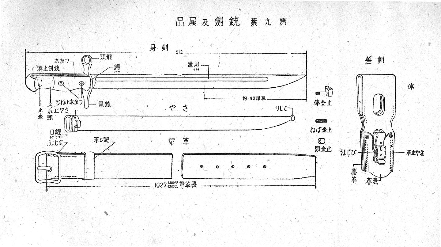 購入した九九式取扱本に銃剣の絵も載っていました。三十年式銃剣の後期型です。 私は、日本軍の銃剣には刃が付けられていないものとばかり思っていましたが、この絵を見ると 先端の方190mmには刃が付けられていたようです。