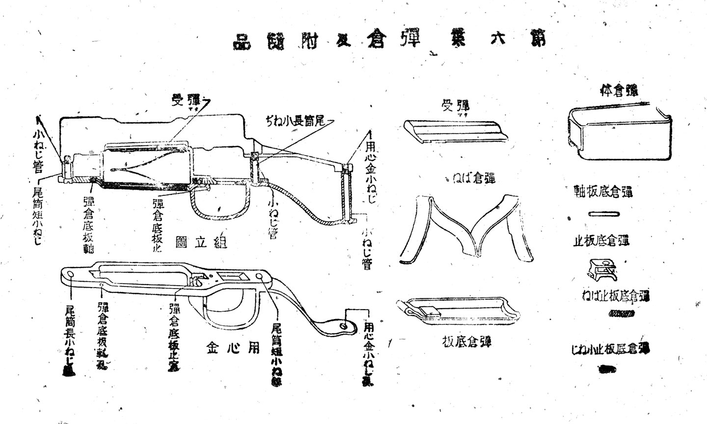 ところが、すぐに改修されたようで断面図にはアッパータングとロアタングが描かれています。 用心鉄右側に上、下支鉄 と描かれています。部品の重なり合いは、トリガーガードの下にロアタングが来るようになっています。