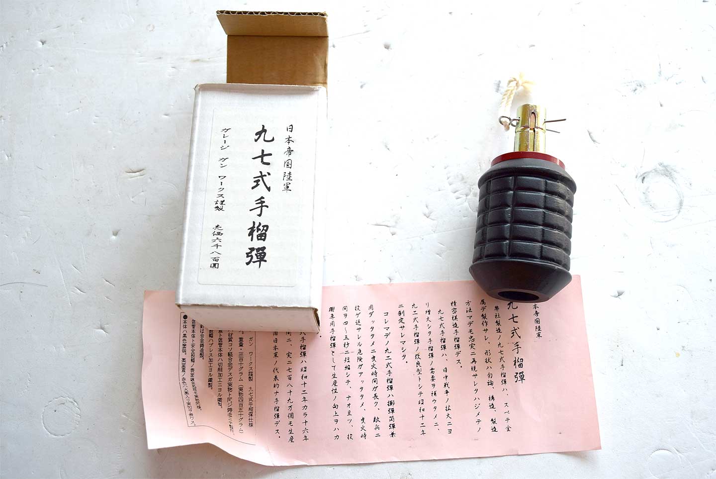 九九式手榴弾レプリカとならべています。モデルガンは中田の九九式短小銃。