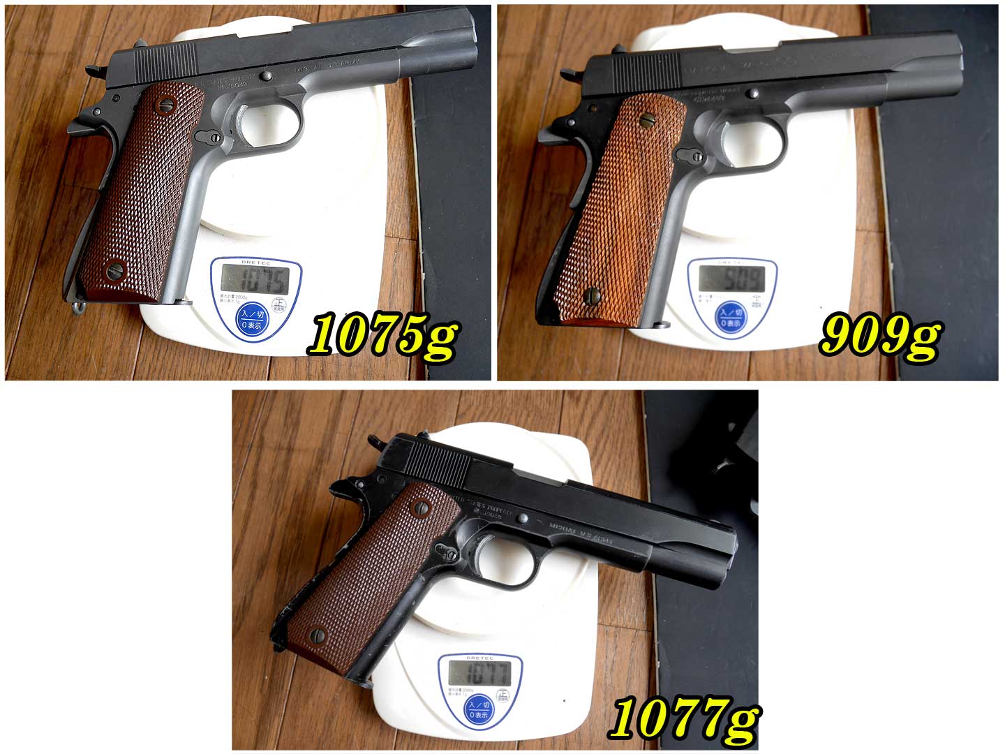 以前記事に書いた表ですが、参考にどうぞ。HF さんの物が重いことが良く分かります。チープな秤なのでプラス・マイナス1gは誤差があります。 また、全部が中古品の入手のためグリップが変わっていることもありますので重さはあくまで参考値です。 計測は、カート無し、マガジン有りの状態です。