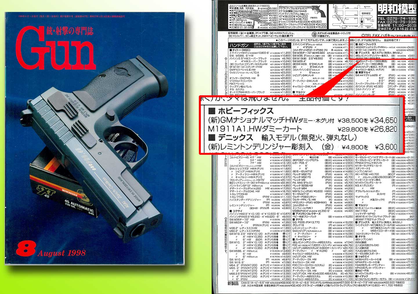 実は私はホビーフィックスさんが登場したころは、モデルガン趣味を引退していたので全く知らないのです。 当時はコンピュータで遊んでいまして、DOS/V やMac をいじってビル・ゲイツさんやスティーブ・ジョブズさんなどの お金儲けに相当貢献していました。ということで昔のGun 誌を探してみました。