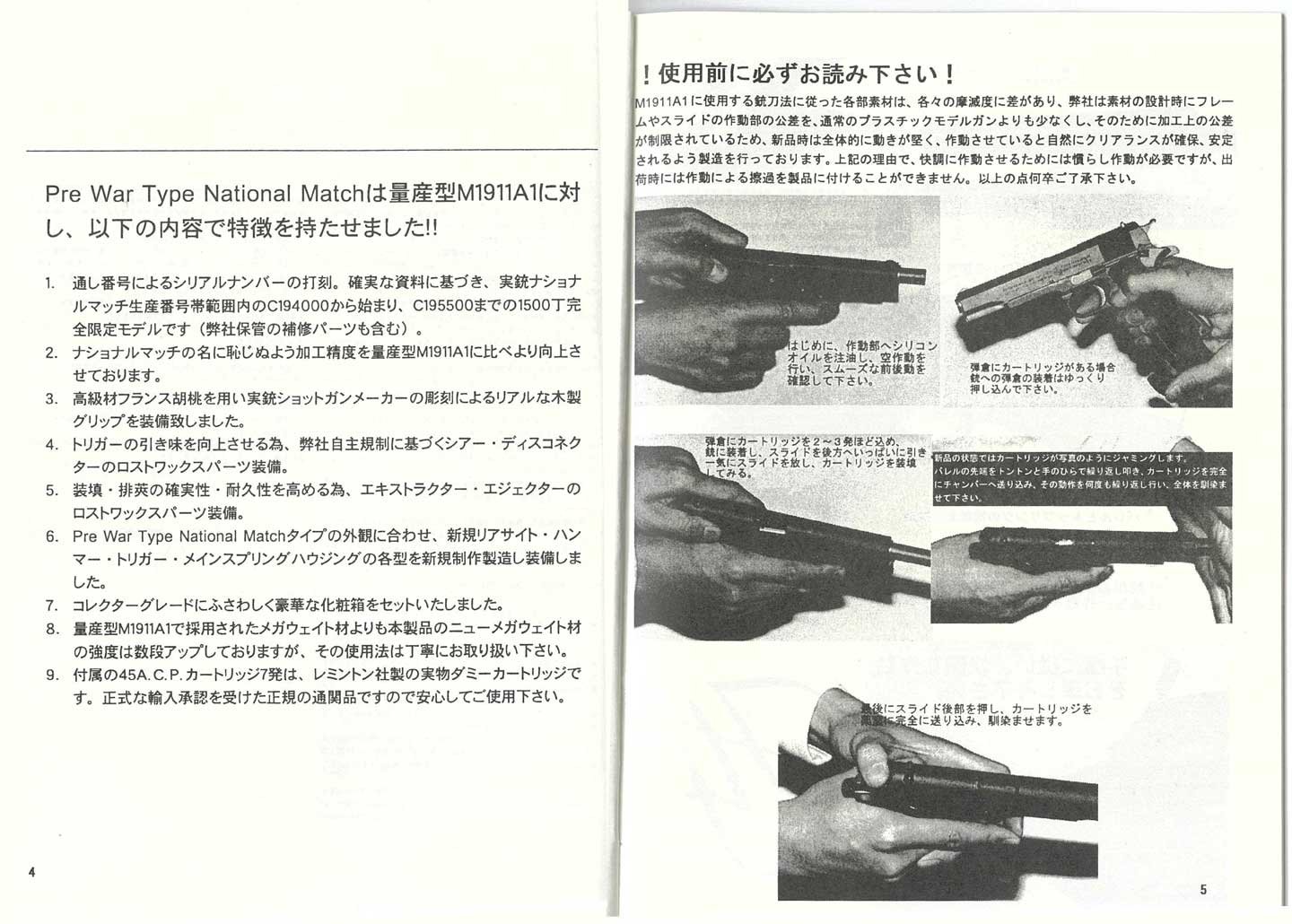 また、Gun 誌で1929年から38口径でナショナルマッチが開発されたと読んだことがありますが、カタログには1933年から ナショナルマッチが45口径で登場し、1935年には45口径の方が消えて38口径のスーパーマッチが登場しています。 カタログと実際の登場は違うことも多々ありますので参考までです。
