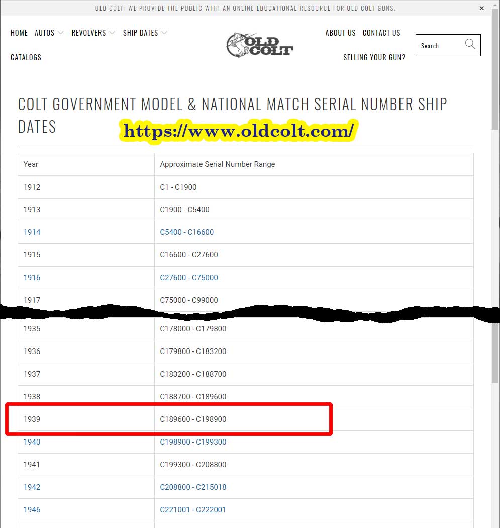 まずはシリアル C194489を調べたら実銃では、1939年製だと分かりました。こちらのページを参考にしましたが、他にも同じようなページは、たくさんありました。