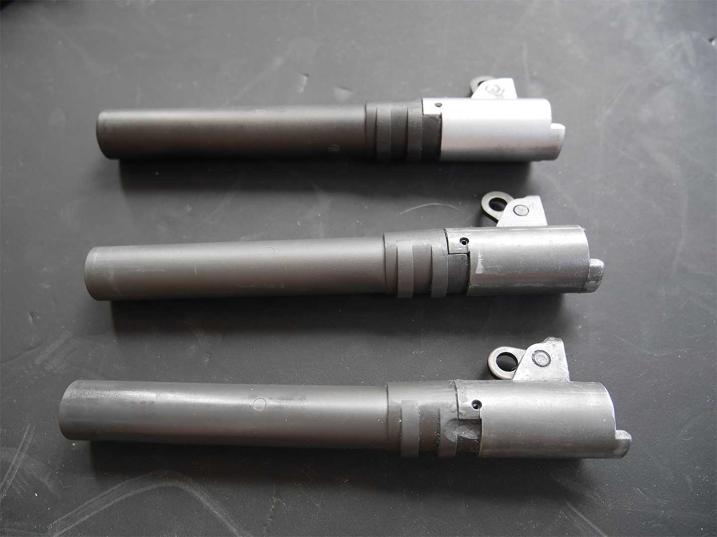 バレルは初期には欠けることがあったそうで、対策パーツなるものが送られてきたようですが、私は中古入手なので 写真のバレルが対策済みなのかは分かりません。また、手前一本は少し欠けている部分がありますが、ここが弱かった部分なのかは、よく分かりません。