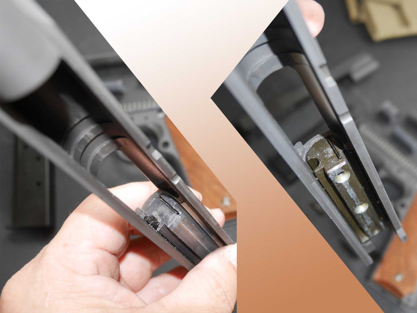 左下のブリーチ写真は、ネジ頭が引っ込んでいるのでディスコネが引っ掛かって円滑作動しないのでパテで頭を埋めています。 本当は一番右のようになっています(ネジは抜いています)。また、一番左はナショナルマッチでブリーチの止め方が変わって ネジは消えました。