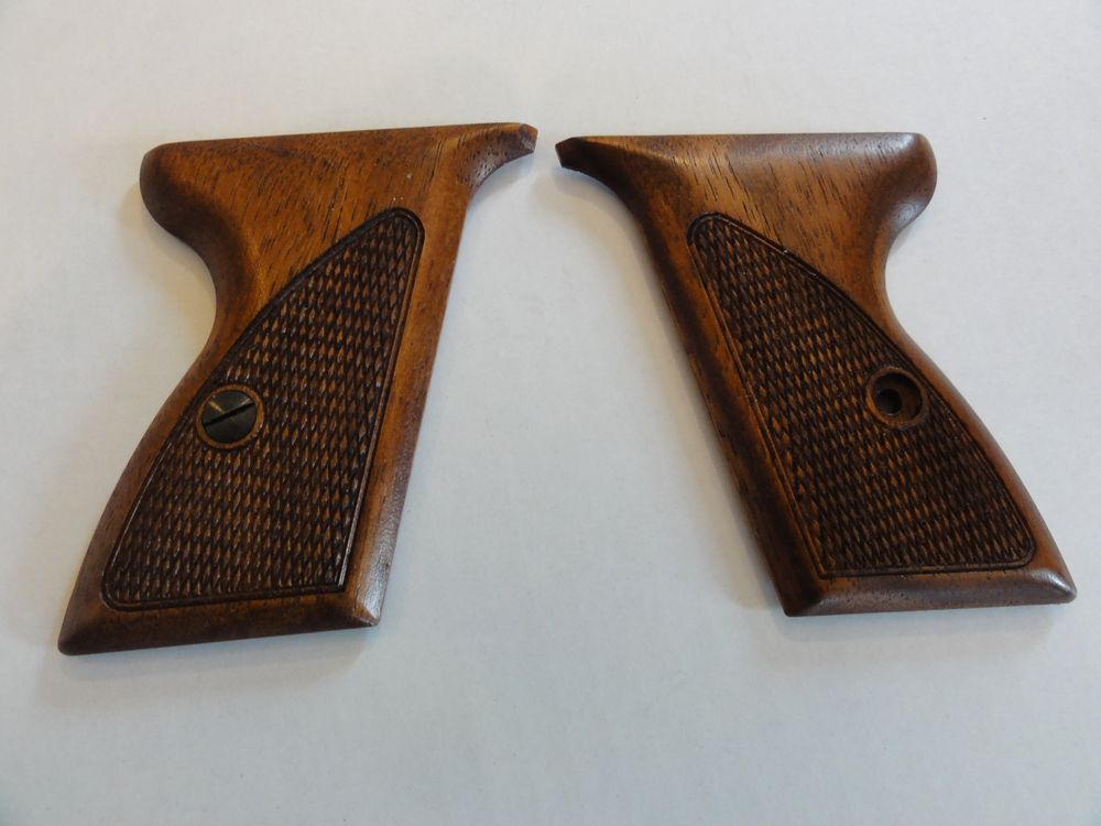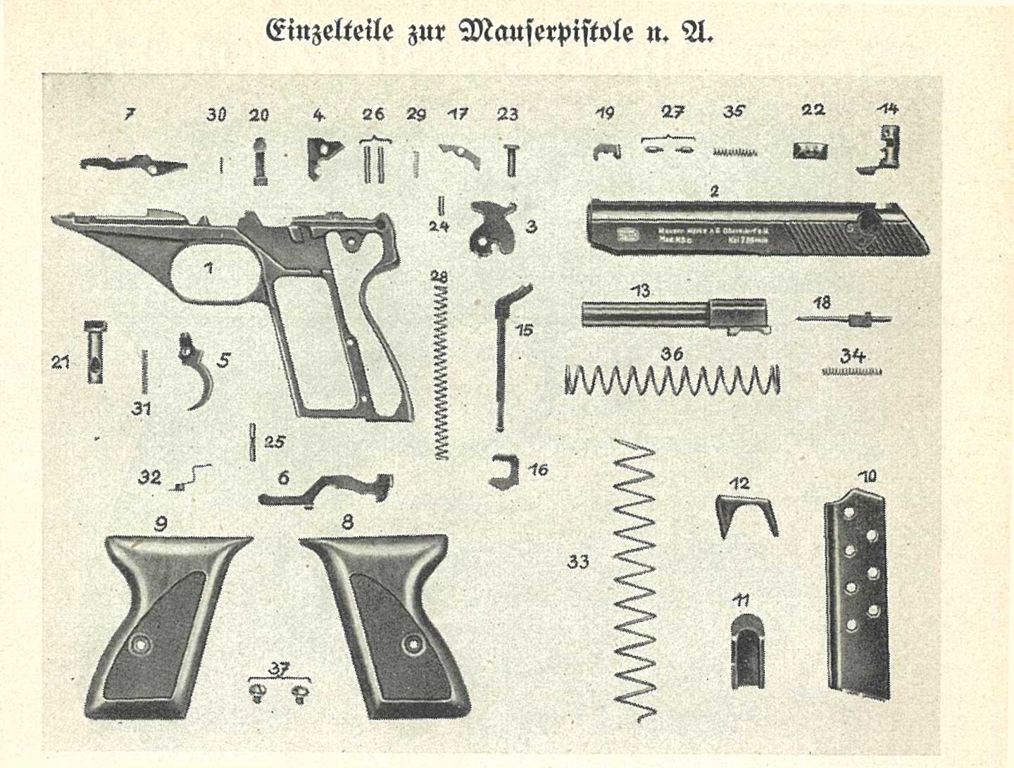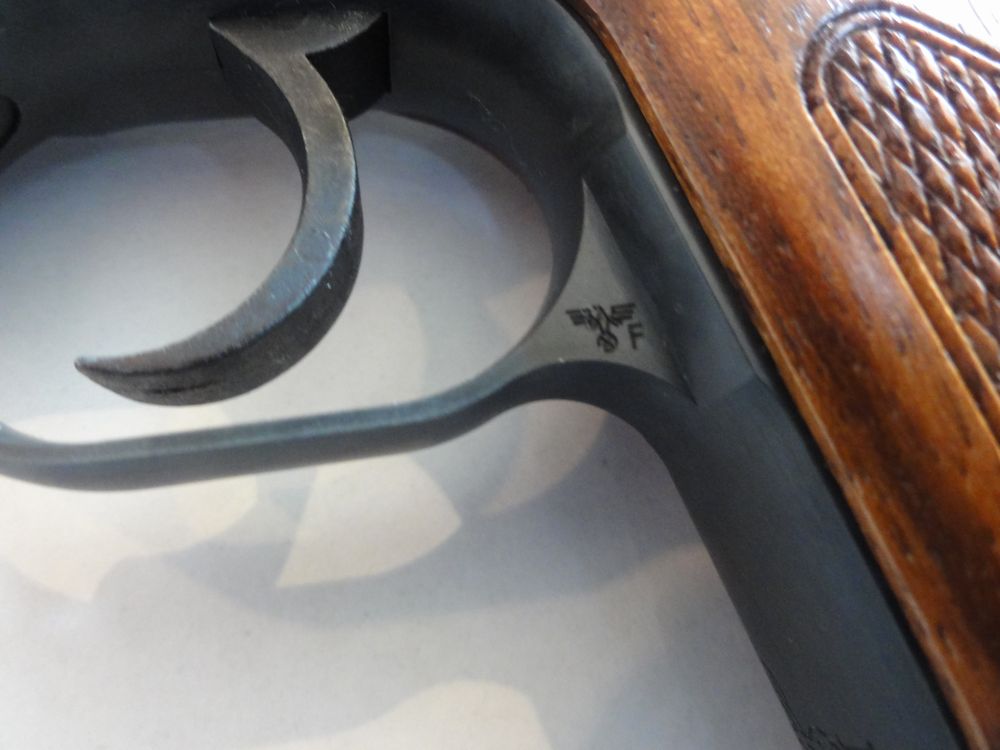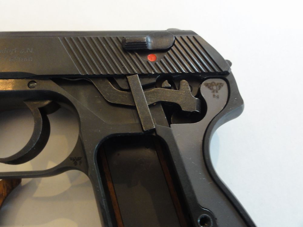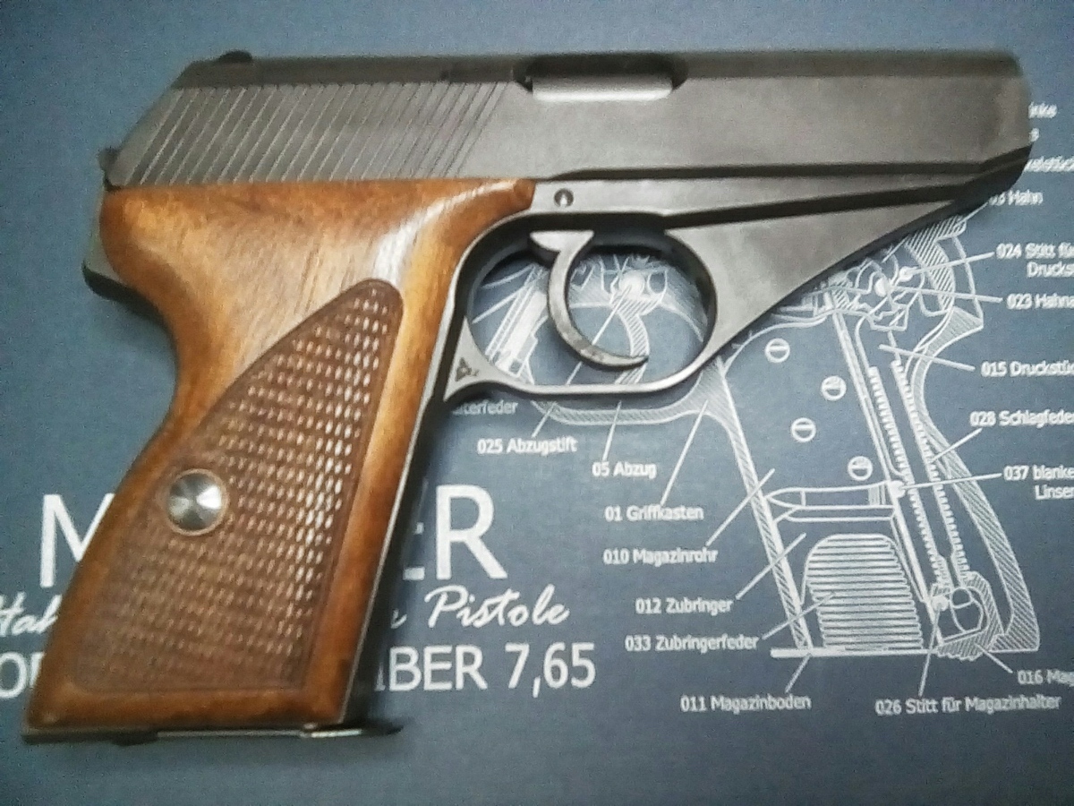 本物は、すこしでも軽くするために肉抜きされているのですが、モデルガンでは逆にそこに鉛で出来たおもりを 挿入しています。上のイラストは大戦中のドイツ警察本からですが、戦後生産のHSc ではフレーム後方が分割式に 変更されています。 戦前形状は削るのが大変そうな形状ですものね。
