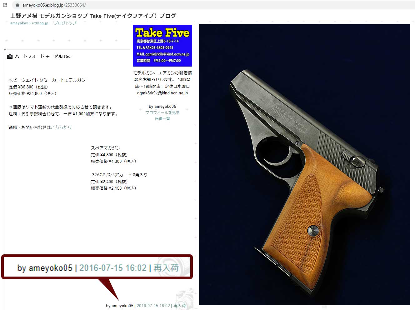 すぐに当時のマルゴーさん(現Tke Five さん)から刻印カスタムが販売されました。製造したのは CAW さんだったようで、CAW さん独自でも刻印+ おもり のカスタム販売をうたい、ネットで予約を募集しました。