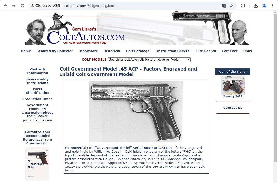 こちらJB シャノンによく似た作品です。URL ↓https://www.rockislandauction.com/detail/62/1599/colt-government-pistol-45-acp
