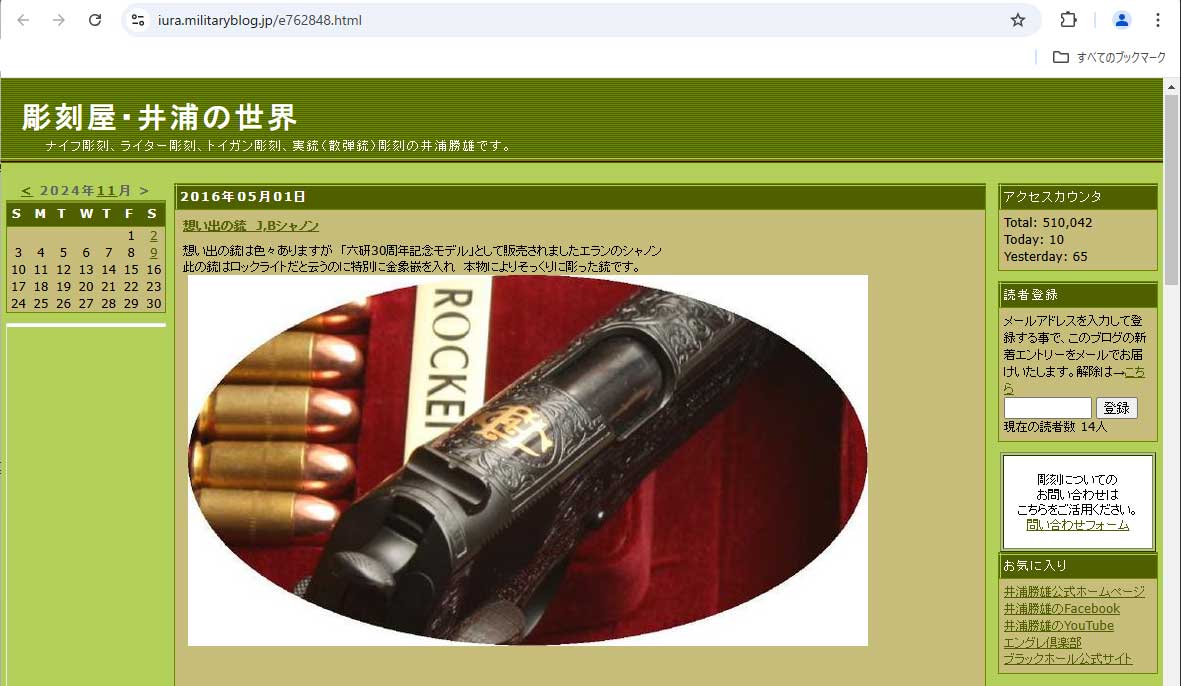 上はすでに無くなっていますが美章園ホビーさんの昔の広告からです。基本的に井浦先生の作品は、ユーザー持ち込みの一品物、特注物ですが、ここに紹介の物は既に彫られたものが市販された例です。
