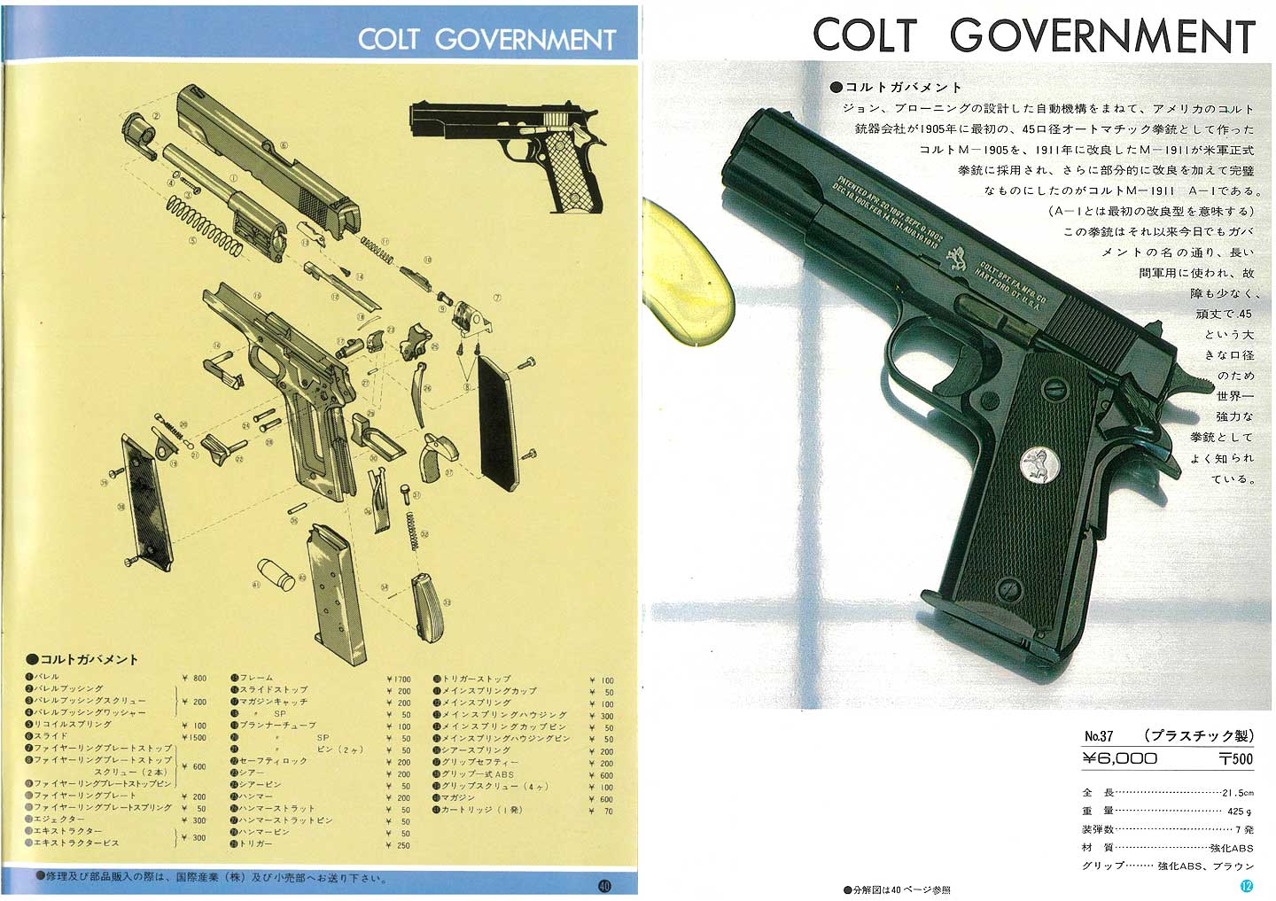 52年規制で金属製オートの販売が出来なくなってから登場したコクサイのプラ製ガバメントです。