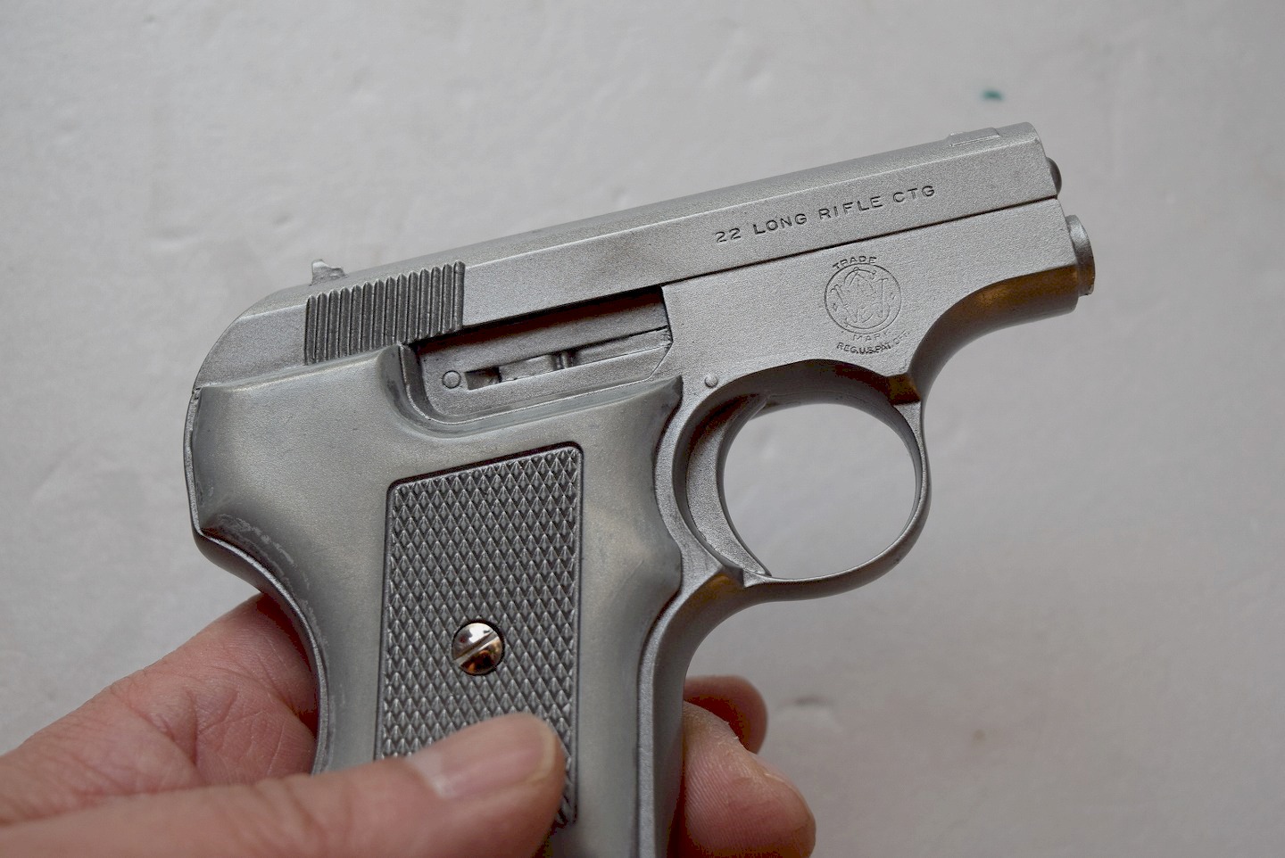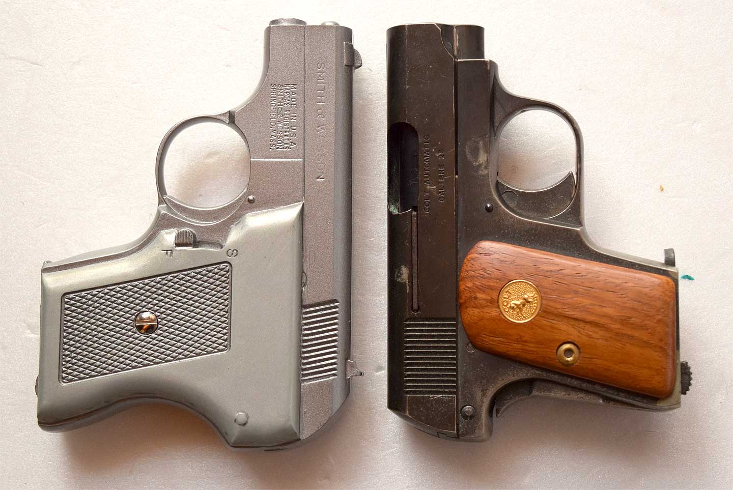 コンパクトにまとまっています。S&W はハンマー式です。S&W は22ロングライフルですが、25ACP よりも大きな銃になってしまっています。
