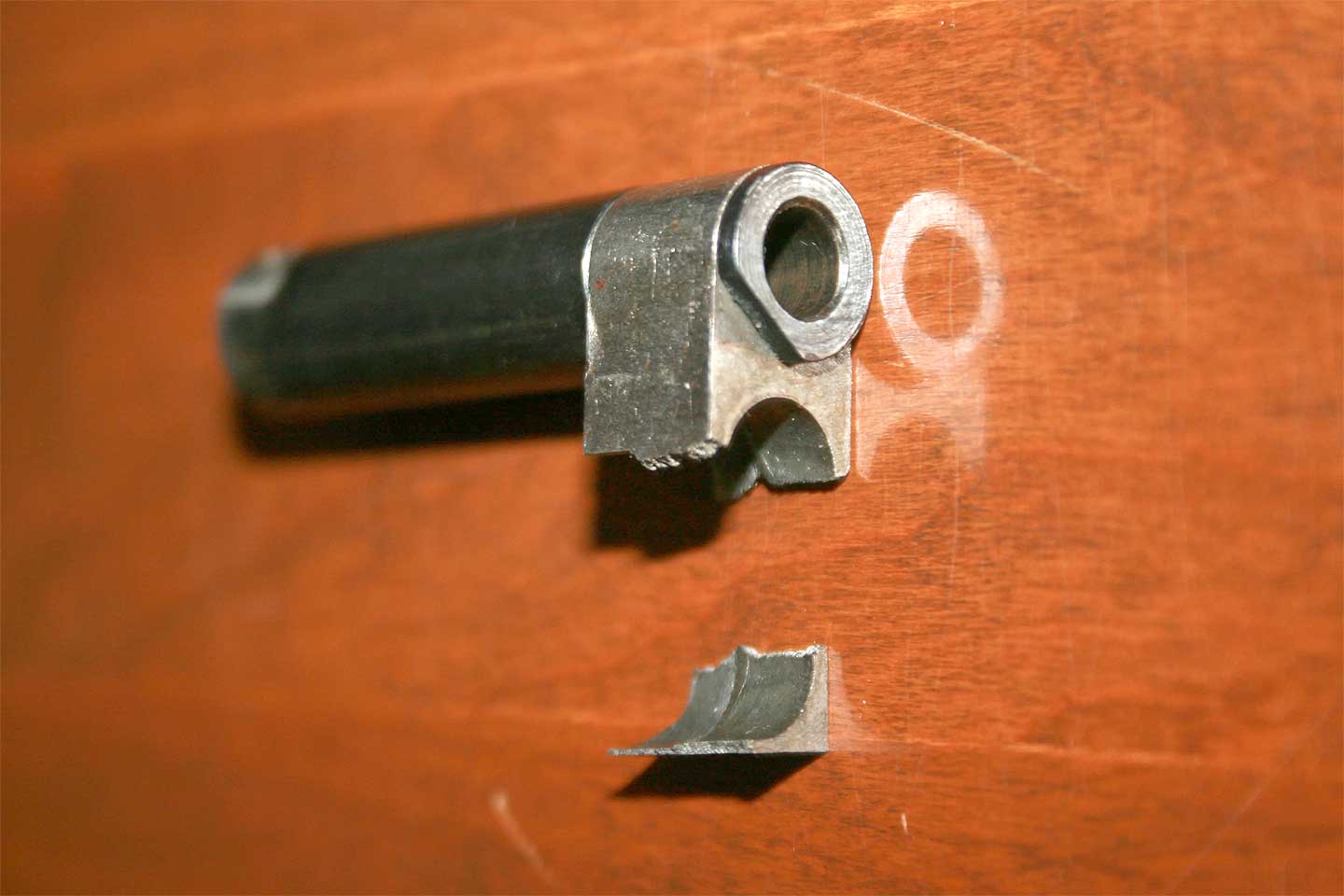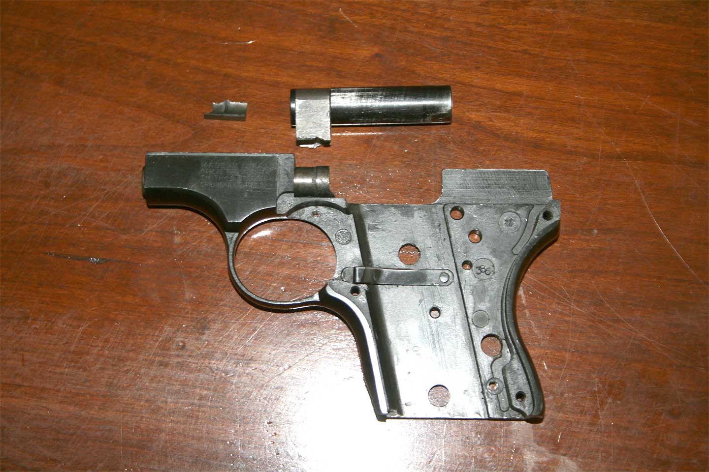 ネットをうろついていたら実銃の壊れたエスコートの写真がありました。たしかにこの薄さでは危ないですね。 写真3の丸い筒は、バレルでは無くってリコイルスプリングが入る部分です。バレルは2枚目写真のようにフレーム内に入っています。