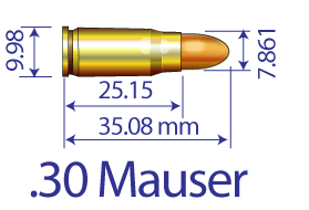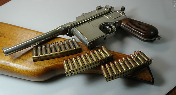 まるでライフルの機関部にグリップを取り付けたような構造でそのグリップ形状からbroomhandle と呼ばれる。 .30モーゼル弾は、この銃のオリジナル口径である。のちに9mmルガー弾がドイツ軍に採用されたため 9mm口径も作られ、それ用は間違わないようにグリップに9と赤色で掘り込みがあった。 写真にあるようにクリップで10発を装填する。外部マガジンではなく、ライフルのように内蔵マガジン式。 後年の軍用フルオートタイプには、マガジン式も存在した。