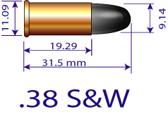 38SW は1877年にベイビー・ラシアンと呼ばれる小型拳銃と共に出現した。 この弾は多くに受け入れられコルト社もニューポリスと言う名称で販売した。 また後年、イギリス軍が永く制式化していた455弾をやめて、この38SWを軍制式化にした。 エンフィールド拳銃の制式弾である。