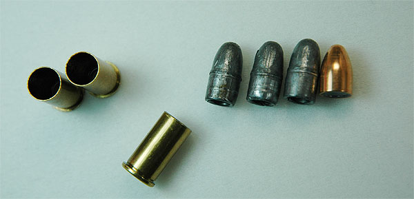 イギリス軍は、200グレインの鉛弾頭を採用した。 ここに入手した物は、もう少し軽い弾頭ではないだろうか。 計っていないのでなんともいい難いが・・・。 右の9mm口径の弾頭が115グレインだ。