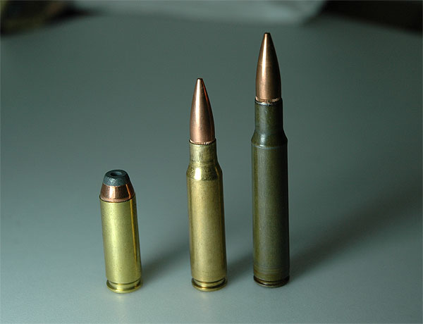 まぁ、有名どころなので勘弁してください。 また、一番右が信じられない大きな500SW 弾。この回転式拳銃弾を超える威力の拳銃弾は しばらくは出てこないであろう。