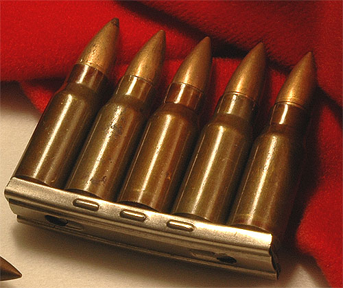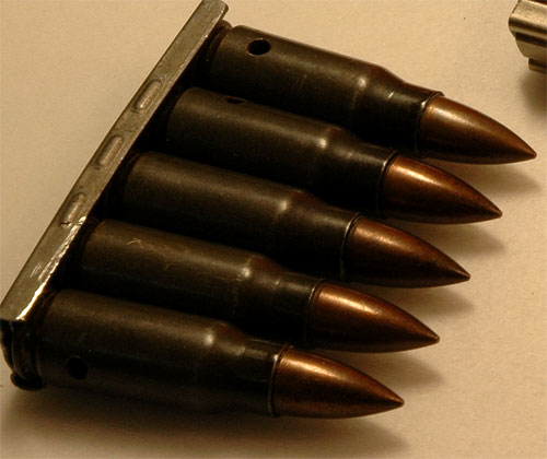 stg44 には、このように5発クリップに入れられた弾丸が供給された。15発または20発入りの
