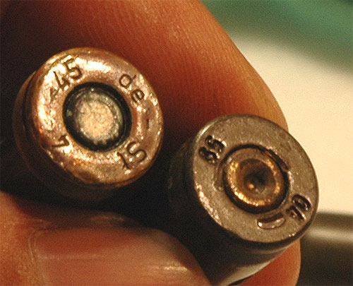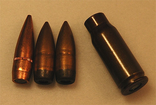 | 重さは125グレインだったそうだ。左に比較のために置いたシエラ30口径が150グレインである。 | |||