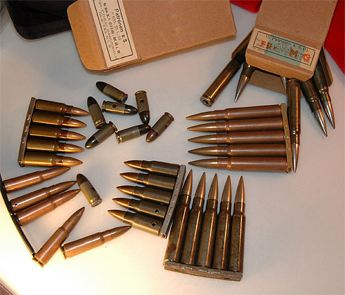 鉄ケースがなんとなく気に入ってぼちぼち集めた結果。 左下のAK47 のものと中心やや右に置いた7.92モーゼル弾は赤色鉄で、まるで真鍮か銅のように見えるが 鉄製なので磁石にくっつく。 全部弾頭にも鉄が入っているので弾頭も磁石にくっつく。 これだけ集めるのに結構な無駄使いをしている。病気かもしれない。バカだ。 | |||