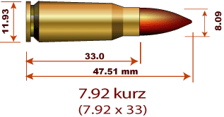 選ばれ1941年7.92mmクルツが完成した。口径が7.92mm なのはライフル弾が