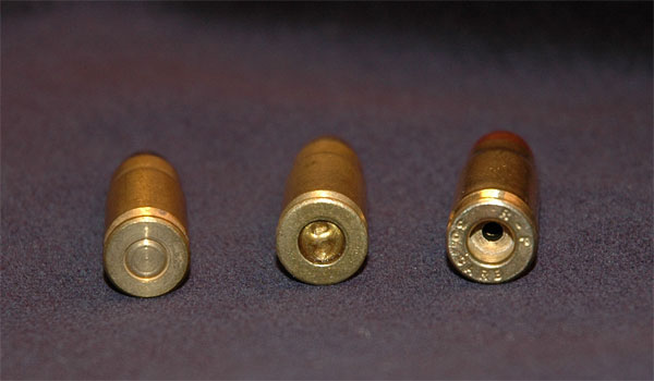 左からモデルガン弾、オリジナル弾、30カービン改のレプリカ弾。 驚いたのは、モデルガンの弾がかなり正確なことだ。 | ||||||||||||||||