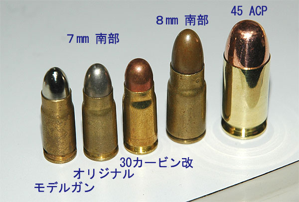 | 大きさの比較写真。8mm南部弾はオリジナルである。 | ||||||||||||||||