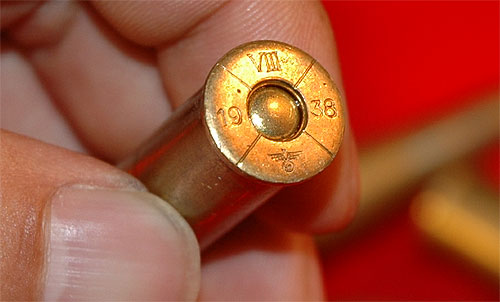 に製造された物だろう。ナチマークの刻印がある。 オーストリア併合は1938年に行われた。当時、反対運動も激しかったようだが首相暗殺、 ヒトラーの軍隊越境という強硬手段、国民投票結果などに世界各国も併合を認めた。 当時のオーストリアは、現在のように領土は小さくなく、2次大戦後独立した各国を含んだ 大きな土地を持っていた。もともとドイツとは同じ民族でありヒトラーもオーストリア出身である。 ドイツ民族による統一国家は長年のドイツ民族の夢でもあったので併合に賛成派の人も多くいたようだ。 現在では、ドイツとの合併は禁止されている。 (併合といえば聞こえは良いが、要は占領、のっとりであり、侵略である。) ナチマーク8x56R 弾・参考ページ↓