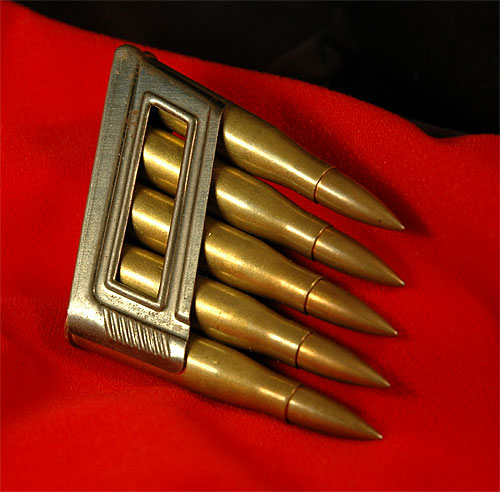 5発揃ったらこのままライフルに入れる。するとクリップキャッチにより