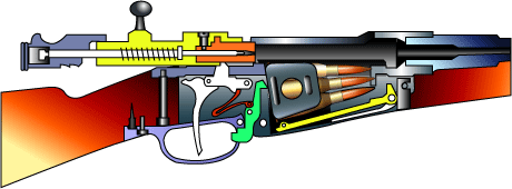 マンリカ式弾倉なのでクリップにカートを装着して銃に入れ込む。1914年サラエボ事件をきっかけに