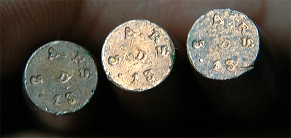 写真とイラストは同じ並びである。右の2発は同じ刻印だ。
