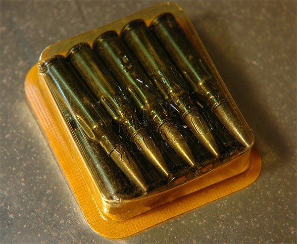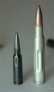 右のでっかい物は、ドラグノフにも使用されているロシア伝統の軍用弾である。