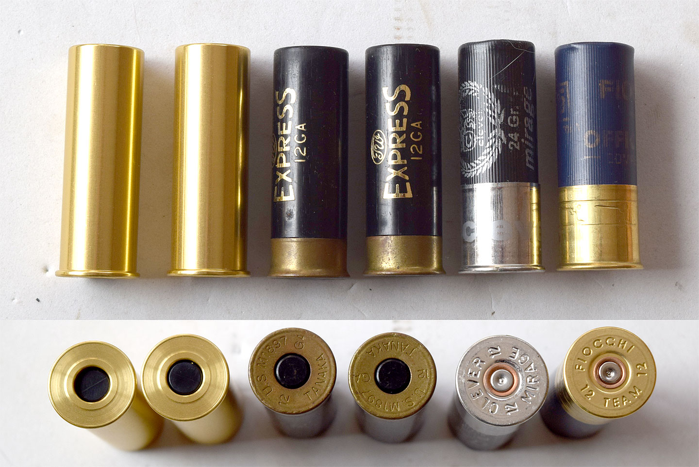 真鍮ケースは、長いのがわかるでしょうが、チャンバー的に問題はないのかと思われるかもしれませんが 散弾銃のカートは、発射後は口が開くためにケースが長くなるので真鍮ケースのように長くても何の問題もないのです。