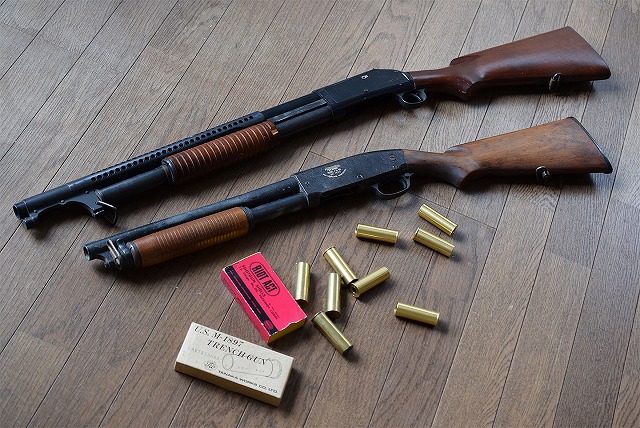 ウインチェスター1897がトレンチガンとして軍に採用された時の正式弾薬は紙製のケースの12ゲージ弾薬でしたが、戦場で水にぬれて紙が膨らみ