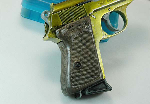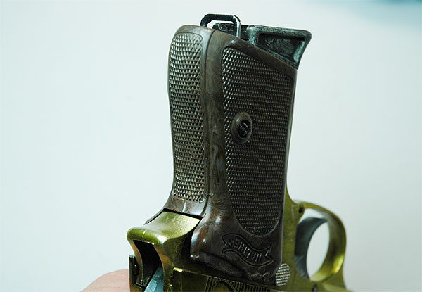 焼けただれたPPKのワンピースグリップを入手。 戦時中のPPK は、ワンピースグリップだったらしい。詳しくは知らない。 それどころか、ワンピースグリップなんて分解図のみで実際には存在していない物だと思っていた。 美品はとんでもなく高価であるが、これは安かった。