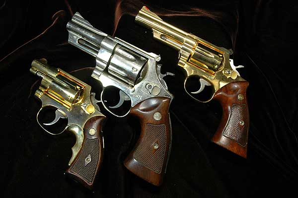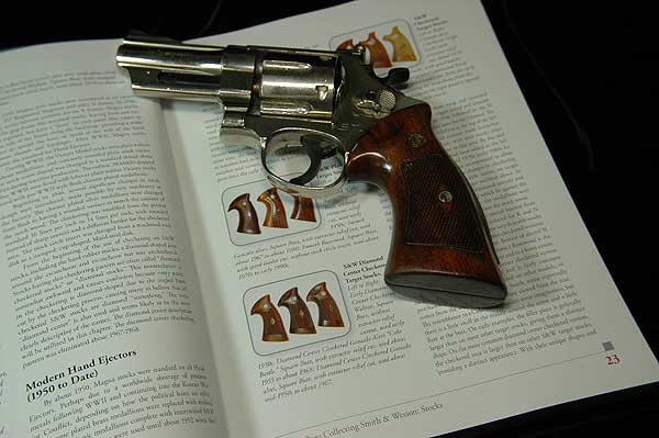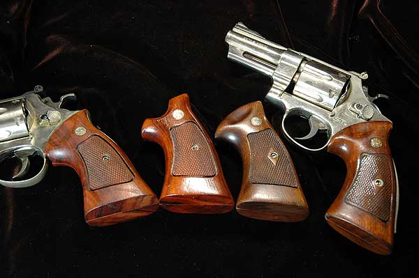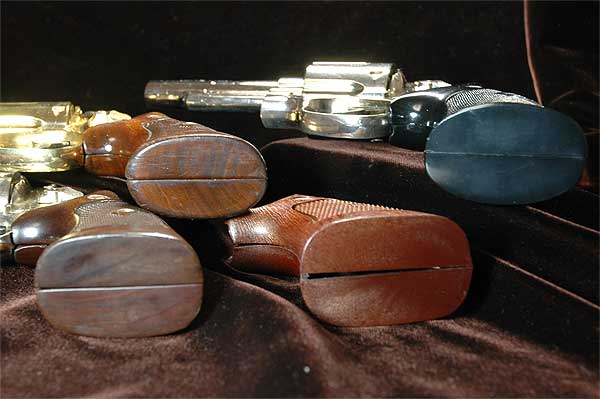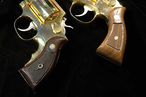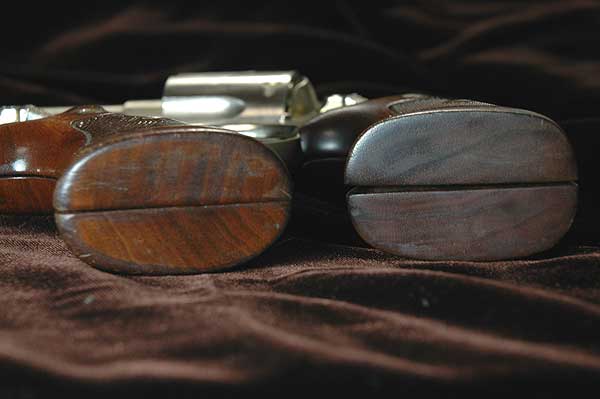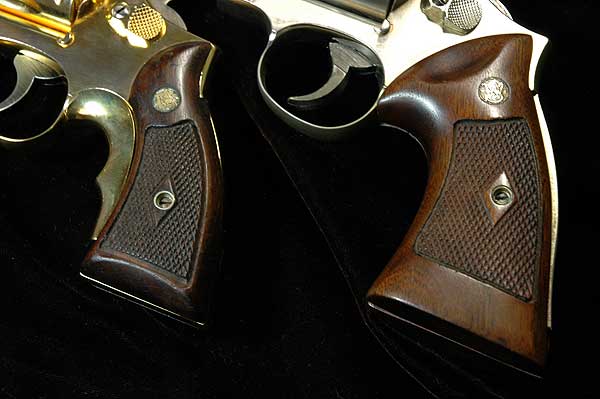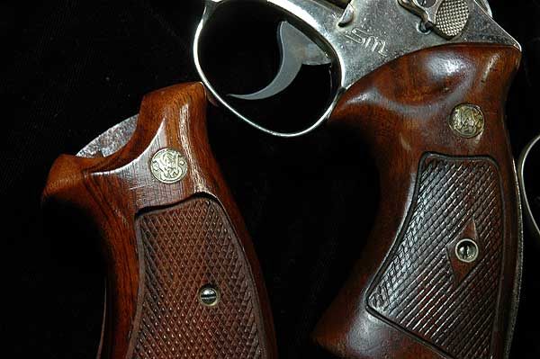 S&W リボルバーの中で古いもののグリップは、ネジの部分のチェッカーをひし形に残してある。