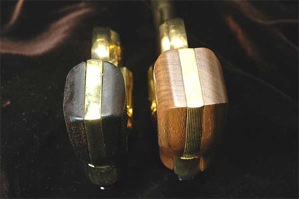 また、コークボトル・タイプというのもあるらしいが、横からの写真だけでは良く判らない。 あれこれ調べてみると、どうもグリップの下のほうが微妙に膨らんでいる物を指すようだが 自分の中では、はっきり断定できていない。 |