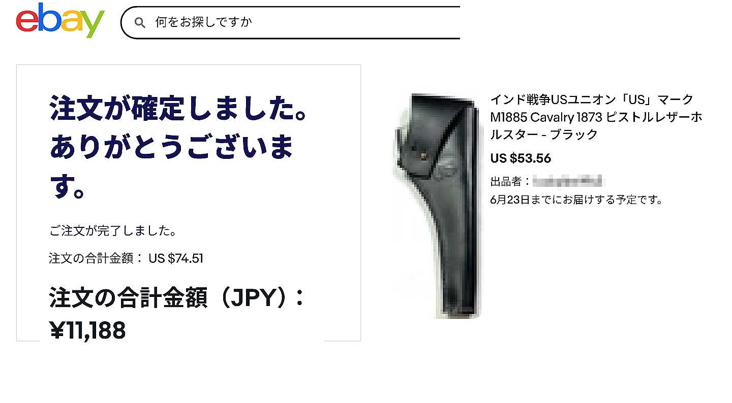 レプリカホルスターは日本では売っていないようでしたので米国のオークション eBay にて購入。